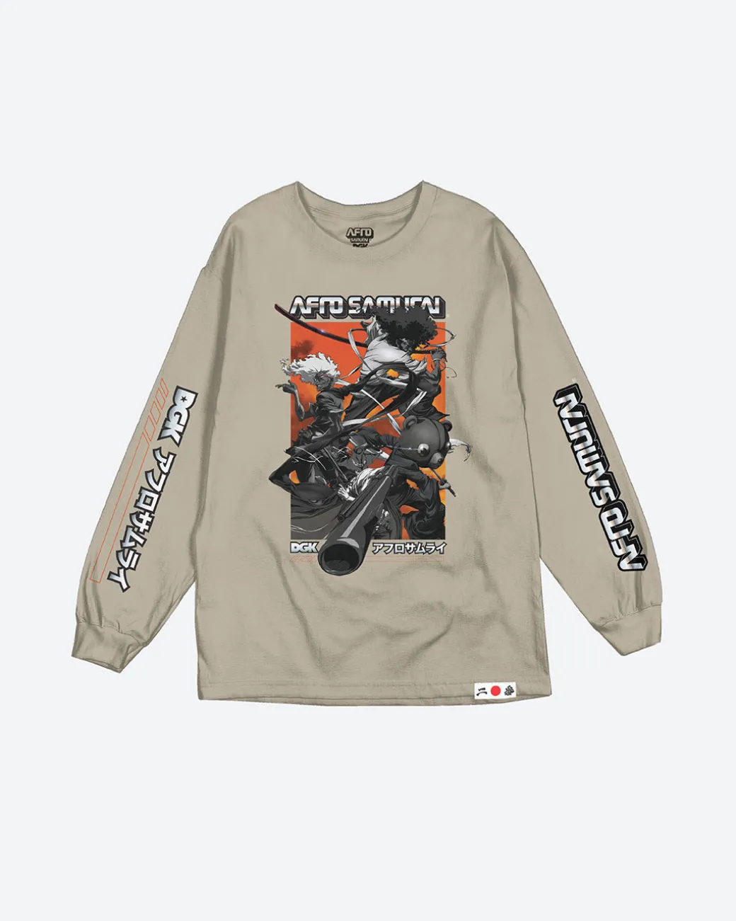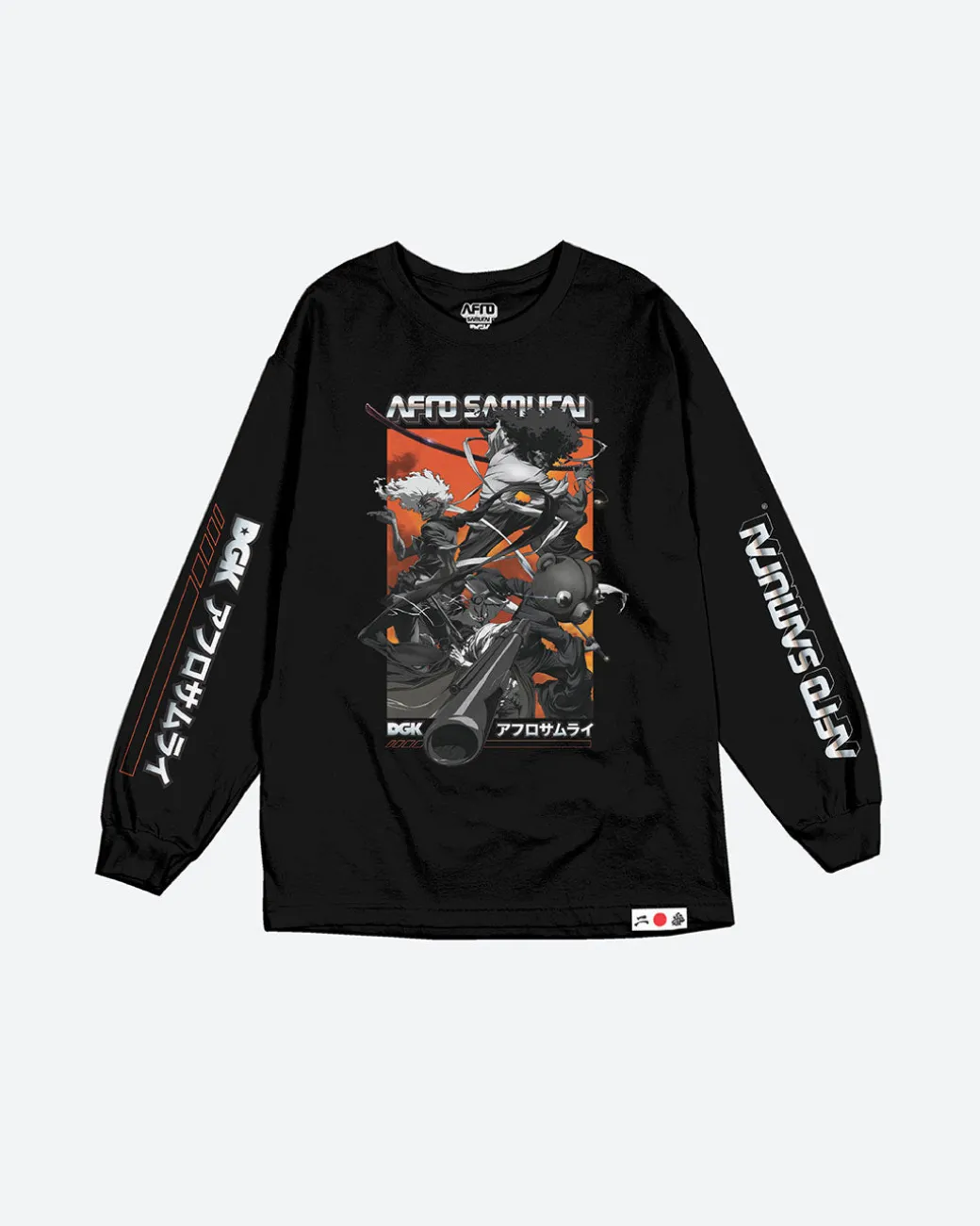 100% Cotton Longsleeve T-Shirt / Classic Fit / Printed Chest, Sleeve & Back Art / Dgk x Afro Samurai Official Custom Art / Small Woven Dgk x Afro Samurai Label