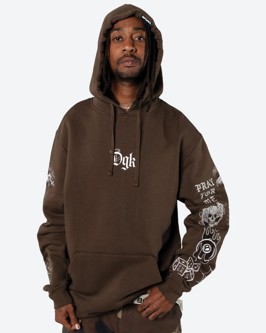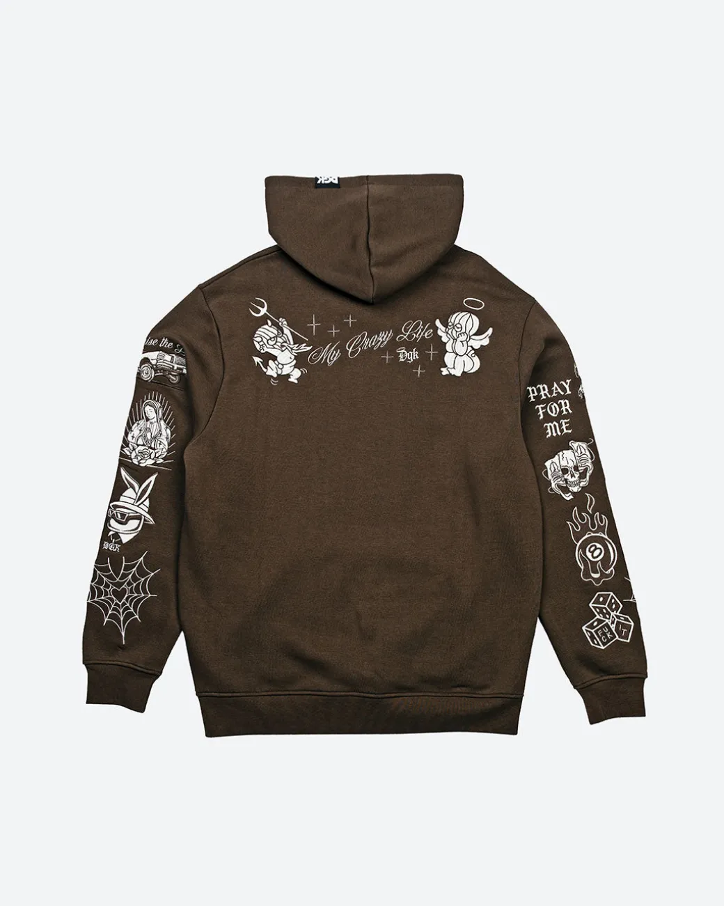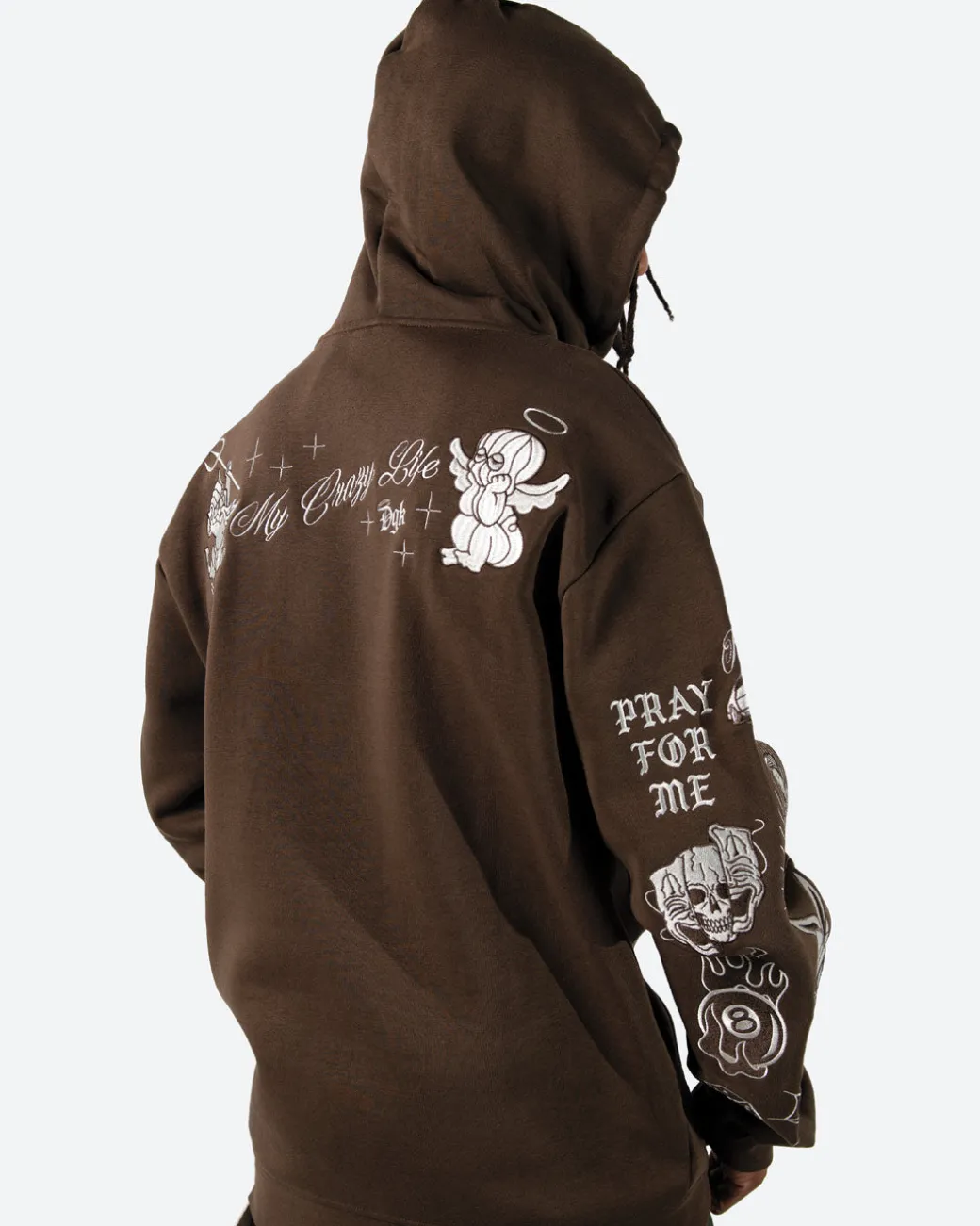 80% Cotton 20% Poly Fleece / Pullover Classic Style Hood / 380gsm Heavy Weight Fleece / Chest Embroidery Art / Back Embroidery Art / Sleeve Embroidery Art / Elastic Cuffs and Hem