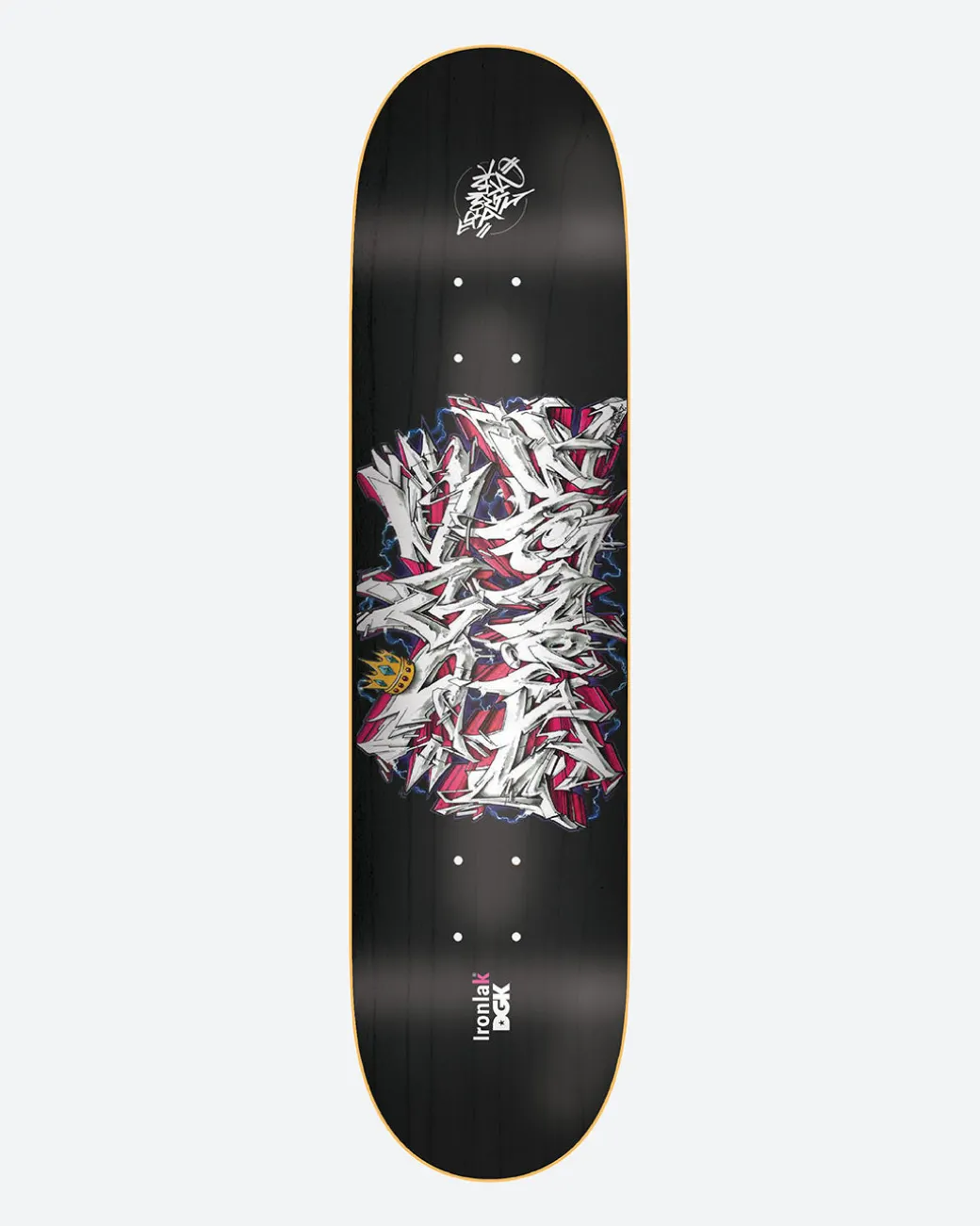 7-ply Maple with Assorted Stain Veneers / Full Graphic Bottom / Top Screen Graphics / Official Ironlak Endorsed Skateboard / Artwork by the Legendary Meks