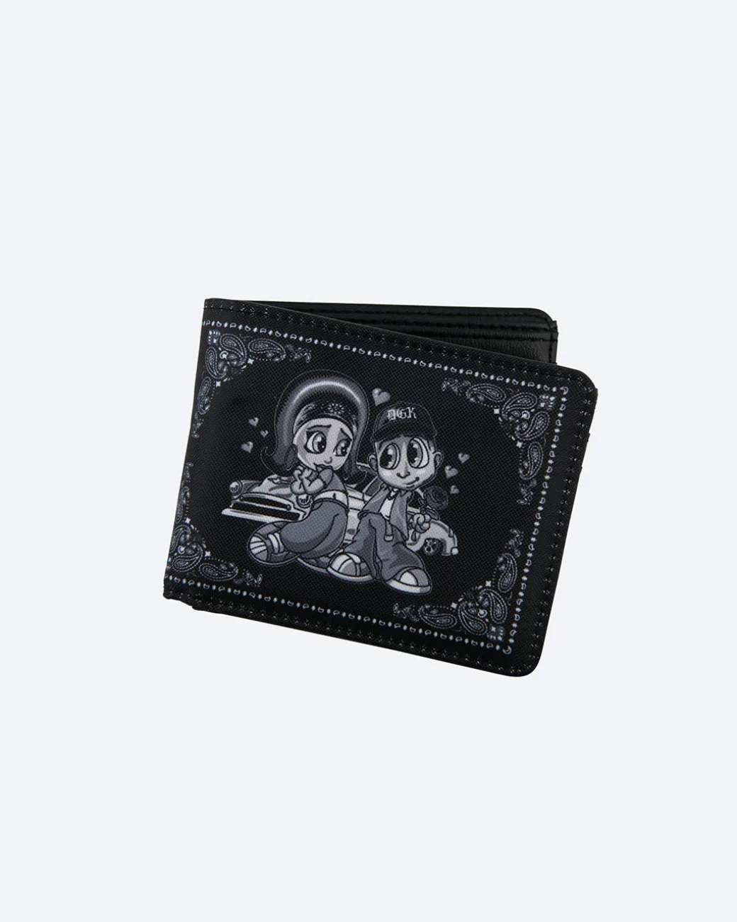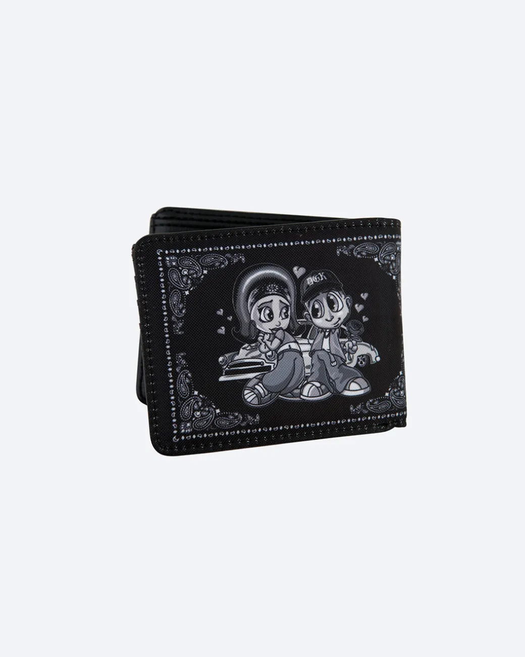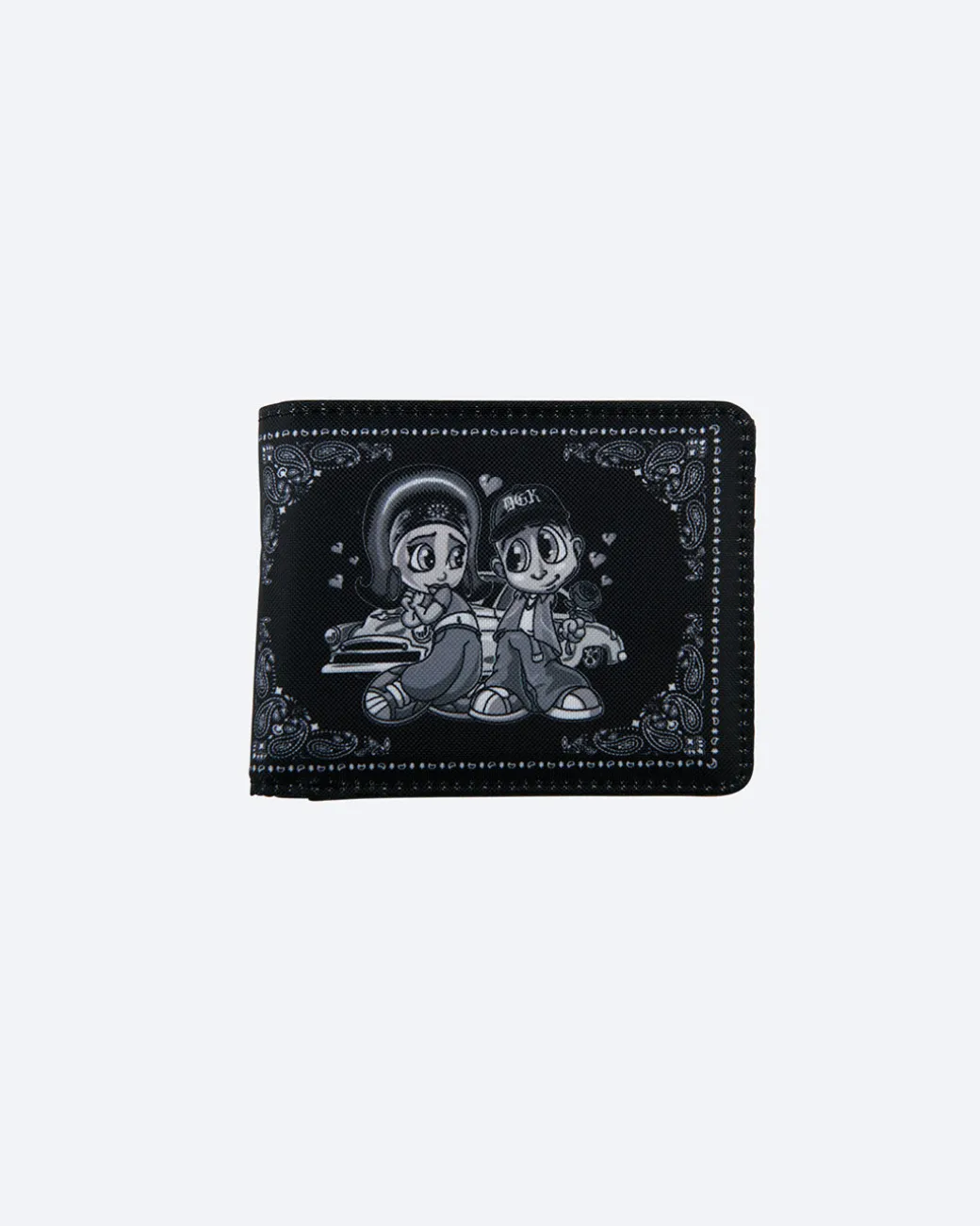 100% Poly 420D / Pattern Sublimated Art / Vegan Leather Interior / Dual Currency Sleeves / Card slots and Clear ID Window / Woven Label
