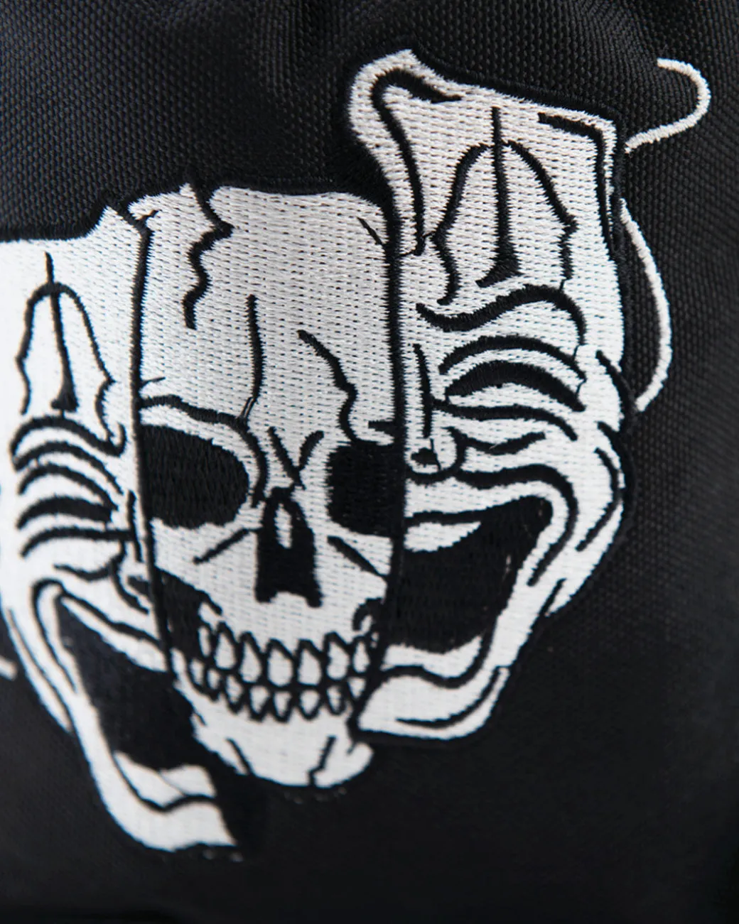100% HEAVY DUTY 420D NYLON / CLASSIC BAG SHAPE / EMBROIDERED ART / FULL SIZE MULTI COMPARTMENT / DUAL DRINK POCKETS / INTERNAL LAPTOP SLEEVE / PADDED BOTTOM / BACK BODY LOGO EMBROIDERY / WOVEN LABEL / YKK ZIPPERS