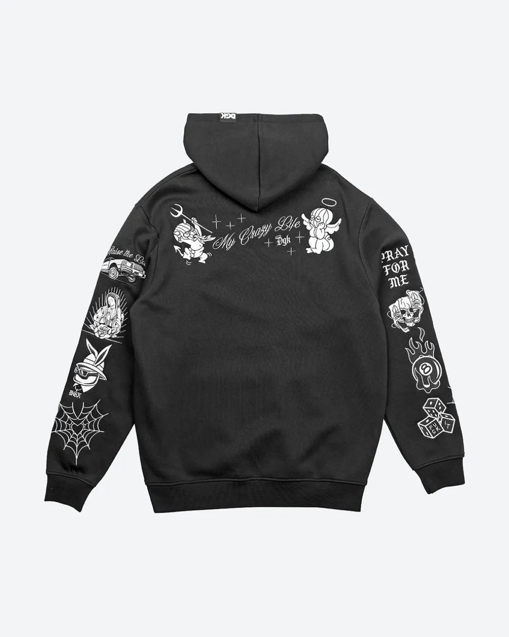 80% Cotton 20% Poly Fleece / Pullover Classic Style Hood / 380gsm Heavy Weight Fleece / Chest Embroidery Art / Back Embroidery Art / Sleeve Embroidery Art / Elastic Cuffs and Hem