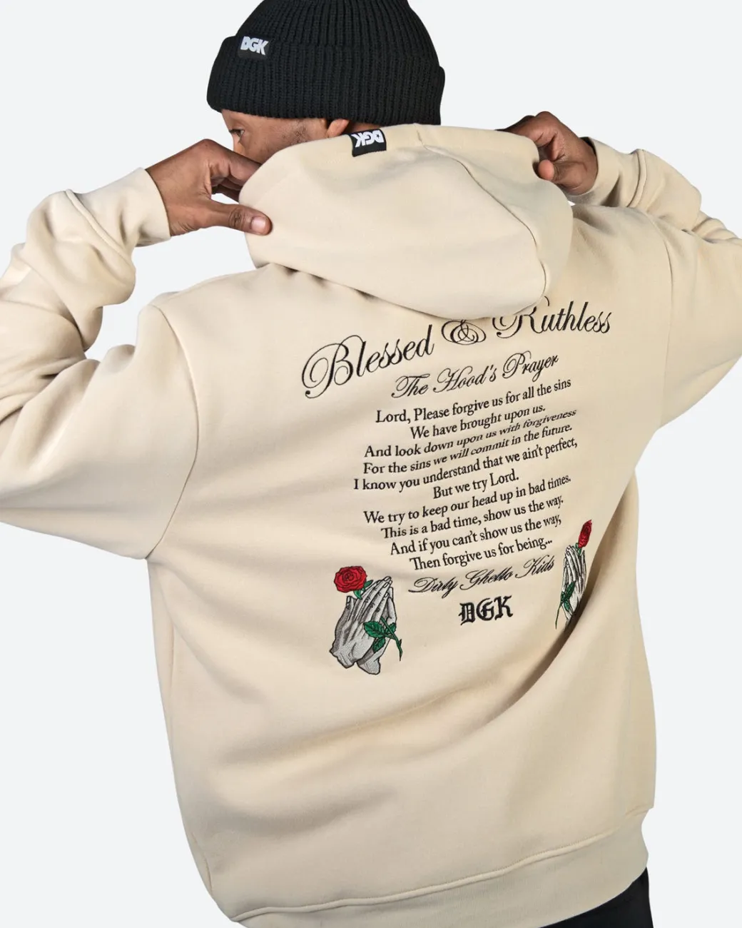 80% Cotton 20% Poly Fleece / Pullover Classic Style Hood / 380gsm Heavy Weight Fleece / Small Chest Embroidery Art / Back Embroidery Art / Elastic Cuffs and Hem / Drawcord Hood