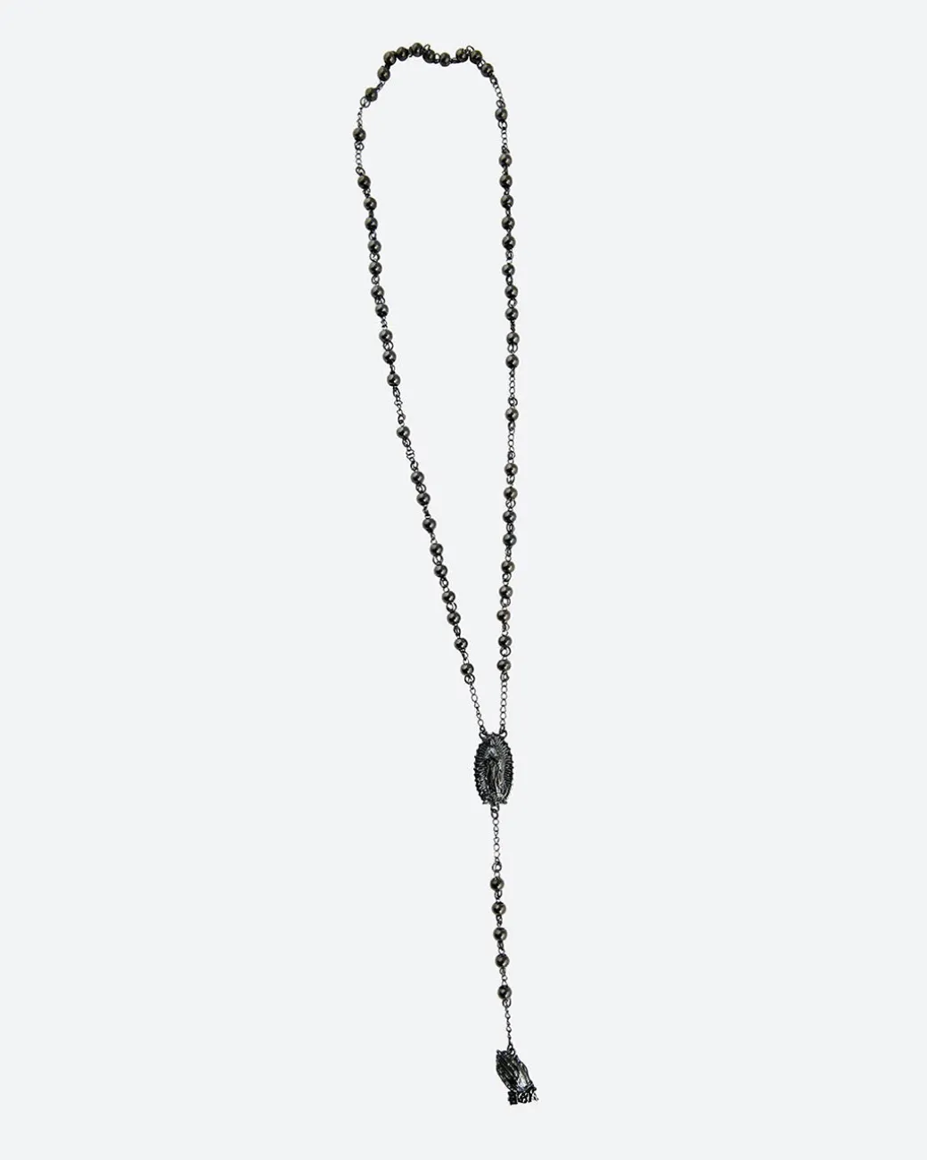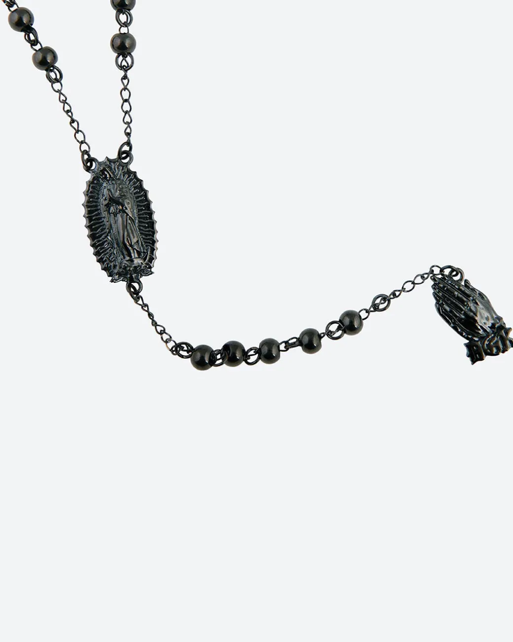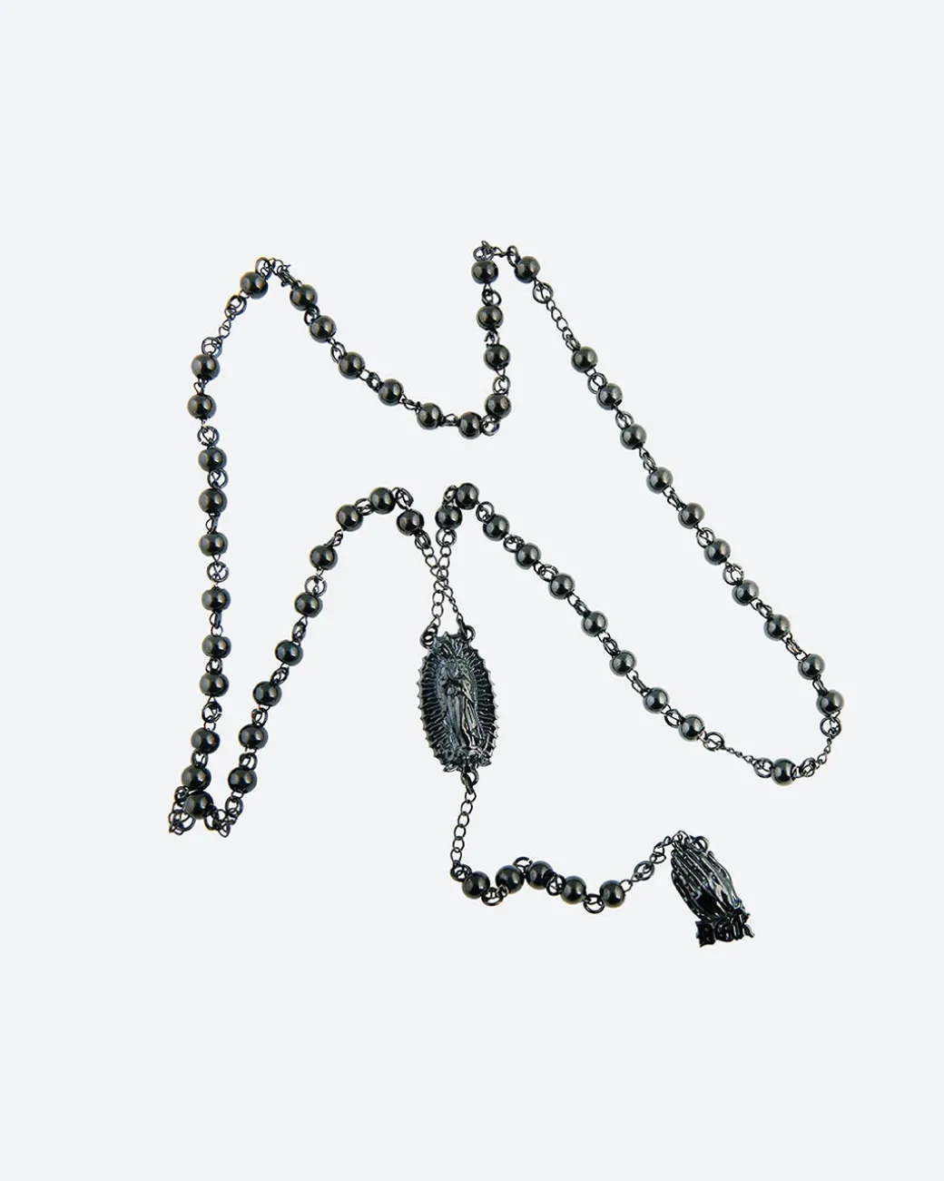 25” Length / Spiritual Protection in the Streets / Black Metal Beads / Metal Charms / Black Felt Bag w/ Gold Foil Art